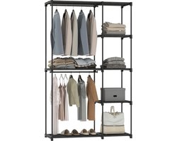 HOMCOM Stoffen Garderobekast Vliesstof, Staal 111L x 43B x 185H cm Zwart
