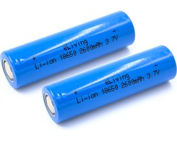 eLiving 18650 3.7V Flat Top batterijen. 2600mAh, Li-ion. 65x18mm. 2 stuks.