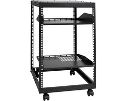 Serverrack 15u, Open Frame, 38-102cm Instelbare Diepte, Vrijstaand/Wandmontage, Met 4 Poten En Wielen