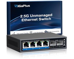 6 poort 2.5G Ethernet Switch met 10G SFP Uplink - Unmanaged, Plug & Play, Desktop/Wandmontage, Fanless Design