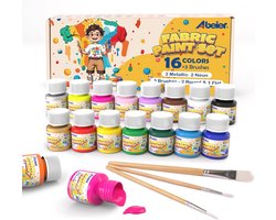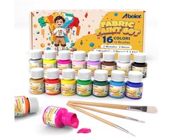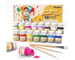 ABEIER Permanente textielverf, 16 kleuren, 20 ml, 3 penselen, acrylverf voor stof en leer, ideaal voor het schilderen van T-shirts, tassen, jeans, schoenen, kleding, leer, ideaal voor kinderen en
