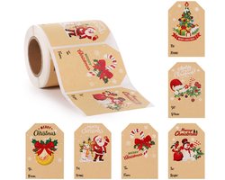 AIEX 250st vaste Geschenklabelstickers, Kerstetikettenstickers Kraftstickersrol Decoratieve Kerststickers voor Feestgunstdoos Envelop Geschenkzakje Kerstdecoratie