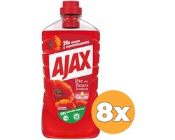 Ajax Allesreiniger Fête des Fleur Rode Bloem - 8 x 1L - Multi-Oppervlakken Allesreiniger - Voordeelverpakking