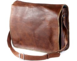 Crossbody Tas Laptoptas Echt Leer Handgemaakte Messengertas Almeria 17 inch – A4 Formaat - Echt Leer – 39x32x11 cm – Verstelbare Riem – Unisex – Echt Leer Cognac Bruin Model 102