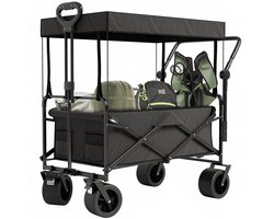 Avalo Bolderkar Met Dak XL Opvouwbaar - Tot 110KG Draagvermogen - 120L - 97x60x105 CM - 360º Wielen - Bolderwagen / Bolderkarren / Strandkar / Trekkar / Plooibare Bolderkar - Voor Strand - Zwart