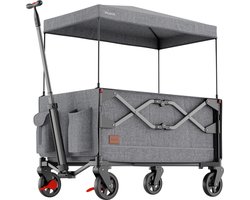 LifeGoods Bolderkar - Opvouwbaar - Kinderenvervoer - Met Dak - 80KG Draagkracht - Strandkar - Draaibare Wielen - Grijs