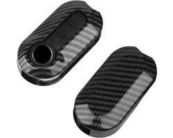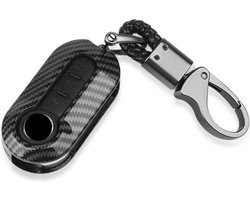 Premium Sleutelcover - Gloss Carbon Look - Sleutelhoesje Geschikt voor Fiat 500 / 500L / 500X / 500C / Panda / Punto / Stilo / Abarth / 595 - Sleutel Case met Sleutelhanger - Key Cover - Auto Accessoires