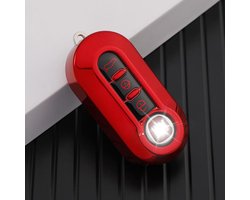 Zachte TPU Sleutelcover - Rood Metallic - Sleutelhoesje Geschikt voor Fiat 500 / 500L / 500X / 500C / Abarth / Panda / Punto / Stilo - Sleutel Hoesje Cover - Auto Accessoires