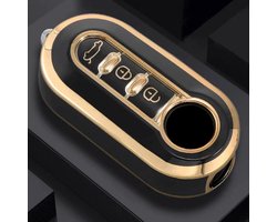 Zachte TPU Sleutelcover - Zwart Goud Metallic - Sleutelhoesje Geschikt voor Fiat 500 / 500L / 500X / 500C / Panda / Punto / Stilo - Sleutel Hoesje Cover - Auto Accessoires