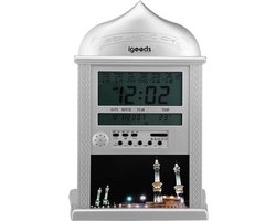 Igoods Gebedstijdenklok - Al Harameen Athan Klok - Moslim Athan Klok - Tafelklok - Azan Watch & Clock - Zilver