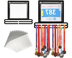 Allecto plus - Sportmedaillehouder voor Hardlopers met Muurmontage - Medaillehanger voor Meer dan 40 Medailles - Ruimte voor 10 Flip-Zakjes - Cadeau Idee voor Hardlopers