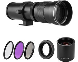 Andoer 420-800mm/1600mm F8.3-16 super telelens zoomlens voor Canon EOS EF camera zwart