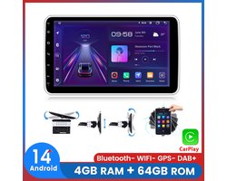 JUNSUN 1DIN 10" autoradio 360° draaibaar scherm Carplay Android 15 DAB+ GPS Navi WIFI BT USB FM 4GB+64GB Met achteruitrijcamera en DAB-adapter