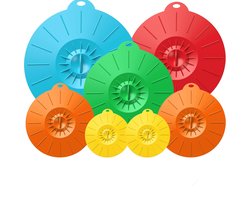 Anti-overkookdeksel - 7 stuks - Stofdicht en luchtdicht - Siliconen deksels - Herbruikbare deksels voor kommen/potten - Geschikt voor de vaatwasser en magnetron