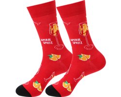 Sokken Dames met Aperol Spritz - maat 36-40 - Rode Sokken met Cocktails/Drank/Sinaasappel