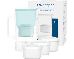 Wessper, Waterfilterkan Wessper D2 Borosilicate, glas, 3L, borosilicaatglas, mint + 4x waterfilter Aquamax standard , waterfilterpatronen, set