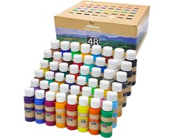 Artecho Acrylverf Set van 48 kleuren, 59ml/2oz kunstverf voor canvas schilderen, ambachtelijke verf benodigdheden voor rots, hout, stof, rijke pigmenten voor professionele kunstenaars, volwassenen, studenten, kinderen