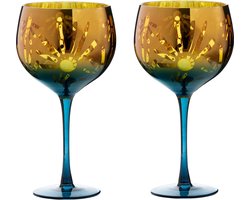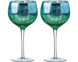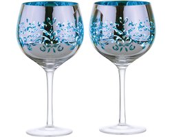 Artland set van 2 gin glazen uit de Peacock pauw collectie - blauw groen 70 CL
