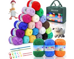 NINGESHOP Breigaren van acryl, 24 kleuren, Arylic breiwol, ultrazacht, met 2 haken, opslag, vlies, herbruikbaar, opbergtas, voor sjaals, handschoenen, handgemaakte kunst