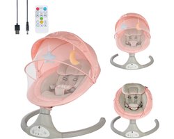 Bebies First Elektrische Wipstoel/ Schommelstoel Met Bluetoothfunctie Relax Met Kap & Speelboog - Roze