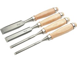 Kinzo Beitelset - 4 Stuks - 6/ 12/ 18/ 25 mm - Carbonstaal - voor Houtbewerking