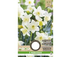 Florex - Narcis Botanisch Pueblo - Bolmaat 10/11 – 5 Bloembollen | Vroegbloeiende Witte Narcis met Crèmekleurige Kroon