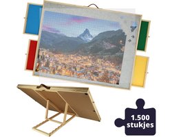 BREND BR-2224 Verstelbare Puzzelplaat met 4 Lades voor 1500 Stukjes - Puzzelbord met transparante Afdekplaat - Puzzeltafel met Vilt en Opbergsysteem