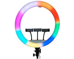 Rixus - Beauty Rainbow Selfie Ring Light - Ring lamp + HOLDER STICK - Selfie lamp - Tiktok lamp - RGB kleuren selfie ring lamp - 22 INCH live video photographic fill lamp LED RXLG32