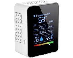 Bekasa 5-in-1 kooldioxidemelder luchtkwaliteitsmelder CO2-meter TVOC HCHO-monitor temperatuur-vochtigheidssensor thuiskantoor sportschool - wit Luchtmeter