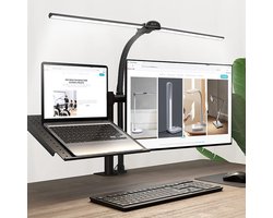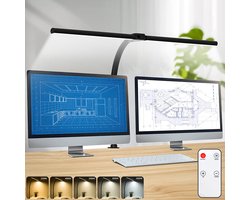 Rosnek Bureaulamp - 24W Bureaulamp LED Dimbaar met Dubbele Kop - Flexibele zwanenhalslamp Bureaulamp met Klem - 5 Dimniveaus & 5 Kleurtemperaturen Bureaulamp met afstandsbediening (3200-6500K) - Hoge Tafellamp voor Thuis, Kantoor, Lezen en Studeren
