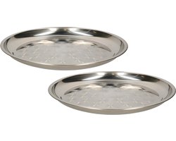 B- 2x -Home serveerschaal/dienblad - plat - rond - zilver - rvs - dia 30 cm - voedsel serveren tray