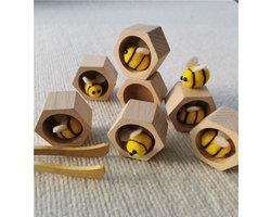Grijp de bijen uit hun bijenkorf - Houten bijenkorf spel - Sensory play - Houten educatief montessori speelgoed - Seizoenstafel - Houten sorteerspel - Open einde speelgoed