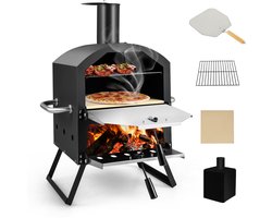 COSTWAY Outdoor pizzaoven, 2-laags pizzaoven met grillrooster, pizzasteen, pizzaschep, waterdichte afdekking, hittebestendige handgrepen en inklapbare poten, voor picknick, feest, camping
