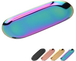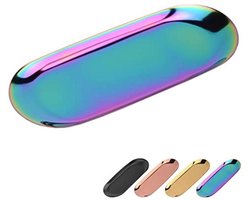 Bymivofun Ovaal dienblad, ovale cosmeticatablets, roestvrijstalen opbergtrays, voor het opbergen van sieraden, snacks, theeproeverij, kaarsen, borden - 23 x 9,5 cm (meerkleurig)