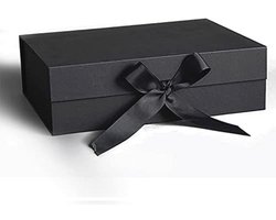 Bymivofun Geschenkdoos met strik, zwarte doos met deksel en lint, decoratieve verpakking voor geschenken, verjaardagen, jubileum, Kerstmis