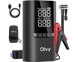 Olvy 12V Jumpstarter voor Auto met Compressor - 1500A - 4-in-1 Starthulp met Powerbank, LED Zaklamp en SOS Noodlicht - Startkabels met Accu - Startbooster