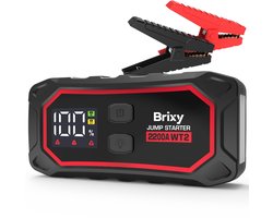 Brixy Jumpstarter voor Auto - 2200A / 16.000 mAH - 4-in-1 Starthulp - LED Zaklamp, SOS Noodlicht en Powerbank - Rood/Zwart