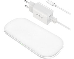 Choetech T535-S Luxe draadloze oplader wit - 20W Powerdual pad met 5 Coils - Geleverd met USB stekker -Wireless charger Fast Charge voor de meeste IOS, Android en andere Qi ondersteunde apparaten