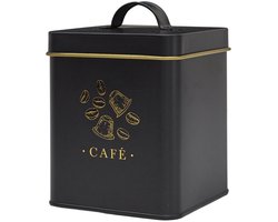 Cook Concept Koffie bewaarblik - metaal - zwart/sfeer print - 11 x 19 cm - 500 gram - koffiebonen paths of cups