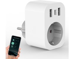 Smart Plug WiFi 16A 3680W met 1 Stopcontact, 2 USB A + 1 USB C(PD20W, Snel Opladen), Slimme Stekker met Energiemonitor, Schema's en Timers, Compatibel met Google Home, 2.4G WIFI
