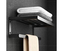 Handdoekhouder, Handdoekenrek zonder boren, mat zwart, wandmontage Handdoekrails, twee lagen, badhanddoekhouder, Handdoekenstang voor badkamer, keuken