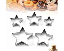 ZijTak - Ster uitsteekvorm - Cookie cutter - Uitsteker - Koekjes - Deeg - Fondant voor Cake - Kinderbrooduitsnijders - Gebak - Brood - Toast - Groenten - Fruit - Kerst - Kerstmis - Christmas - Star - Winter - Bakken - Koekjes- RVS - 5-delig