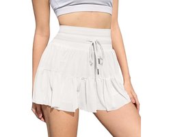 CheChury Tennisrok voor dames, golfrok, zomer, tennisrok met korte broek eronder met zakken, hoge taille, tule rok, casual minirok, ruches, gelaagde golfskort, yoga sport