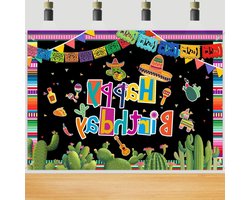 Gelukkige verjaardag fiesta achtergrond - Mexicaanse thema Cinco De Mayo feestdecoraties met kleurrijke banner en fotocabine rekwisieten