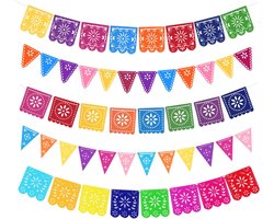 Mexicaanse Feestdecoraties - Dag van de Dode Banner voor Fiesta Party - Opengewerkte Garland met Kleurrijke Details - Cinco De Mayo Decoraties - Dia De Los Muertos - Set van 5 Banners