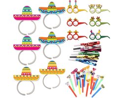 Aoriher Cinco De Mayo Sombrero & Hoofdband Set Feestpakket - 6 Stuks Sombrero Feesthoeden en 6 Stuks Feestbril Maskers, Mexicaanse Hoofdband en Nieuwigheid Mexicaanse Fiesta-bril Fotorekwisieten