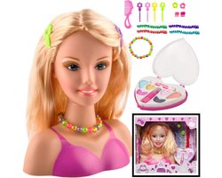 Decopatent Speelgoed Kaphoofd - Sminkpop met make up voor Kinderen - Makeup pop - Kappop - Schminkpop voor Meisjes - Stylinghoofd - Blond Haar - Opmaakpop - Kapkop met haar accessoires en make-up - Kaphoofd voor Meisjes