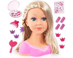 Make-up Pop Kaphoofd - Speelgoed Kappop - Opmaakpop met haar accessoires voor Kinderen - Stylinghoofd - Blond Haar - Schminkpop zonder Makeup - Kaphoofd voor Meisjes