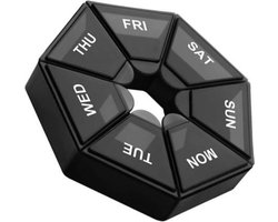 FSW-Products - Weekpillendoos - Zwart - Rond - Medicatiedoos - Pillenorganizer - Dagelijkse Medicatiebox - 7 Compartimenten - Pillenhulp - Weekdagen - Planner