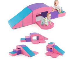 COSTWAY 5-Delige Klim en Kruipactiviteitenspeelset voor Kinderen Lichtgewicht Blokken van Zacht Schuim voor de Ontwikkeling